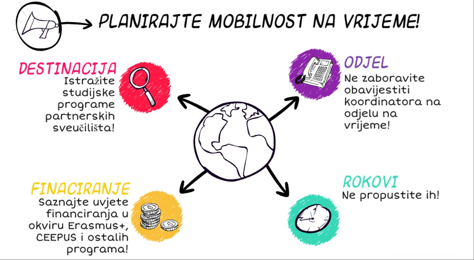 27. listopada 2016. – U četvrtak, 27. listopada, Sanja Stepanović iz Ureda za međunarodnu suradnju održala je informativno predavanje o studentskoj mobilnosti preko Erasmus+ i CEEPUS programa te međusveučilišnih bilateralnih ugovora na Odjelu za sociologiju u 10:00 sati.