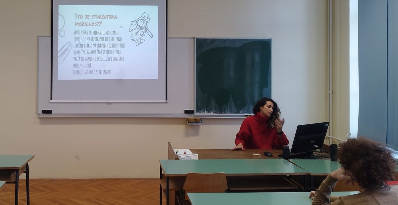 16. ožujka 2016. – U srijedu, 16. ožujka 2016. Rafaela Burmeta iz Ureda za međunarodnu suradnju održala je u suradnji sa studentskom udrugom ESN prezentaciju u Studentskom klubu Božo Lerotić. Tema prezentacije bila je popunjavanje obrasca i pisanje motivacijskog pisma za Erasmus+ natječaj.